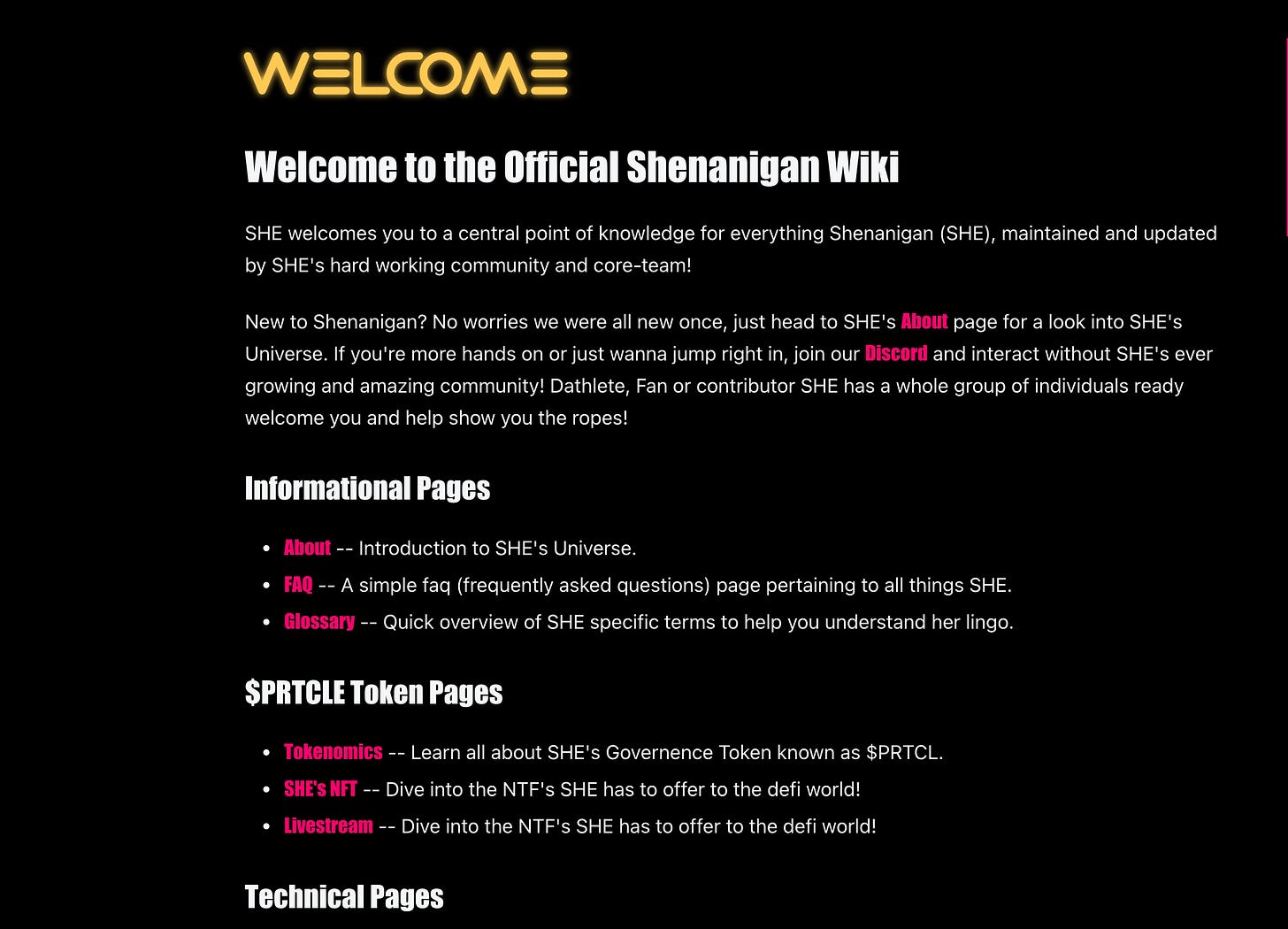 Kitty has collected and refined our entire project documentation in order to align our current wiki with our new standards of Shenanigan. “A central point of knowledge for everything Shenanigan,” as he would say. If Shenanigan is your first DAO, we want you to be able to navigate not only our token, but other projects as well.